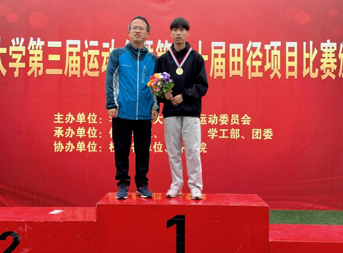 10月27日,在第三届运动会暨第四十届田径项目比赛中,信息工程学院林立新以11.50的成绩夺得男子100米金牌!