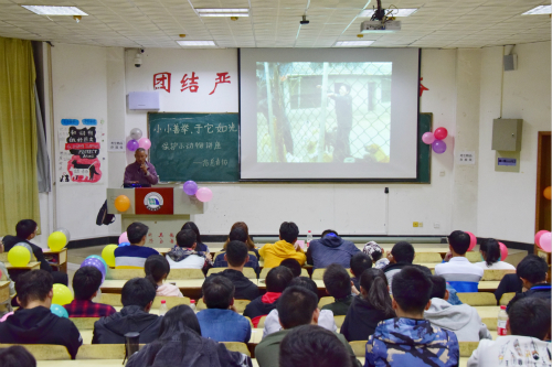 活动当晚,南昌市小动物保护协会会长张倍倍亲临华东交大,于南区图书馆101室开展保护小动物讲座。张倍倍首先介绍了当今校园内依然存在不关爱流浪小动物,甚至虐待小动物致死的现状,并为同学们讲述了动物保护的意义与重要性。志愿者为在场的同学们播放了《与猫狗相处的知识课堂》相关视频,并积极呼吁广大在校学生不养宠物,做一个负责任的大学生。听取讲座的同学们积极与张倍倍进行互动交流,活动现场气氛热烈。