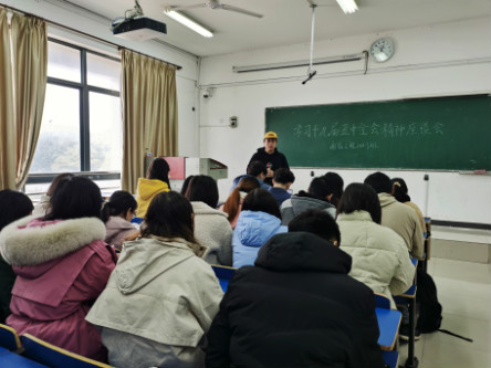 11月27日,18级通信三班在逸夫楼307教室开展学习党的第十九届五中全会精神感悟分享会,本次会议旨在让全体同学学习交流并深入领会第十九届五中全会重要精神。团支书曹婷担任本次活动的主讲人。