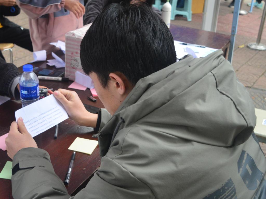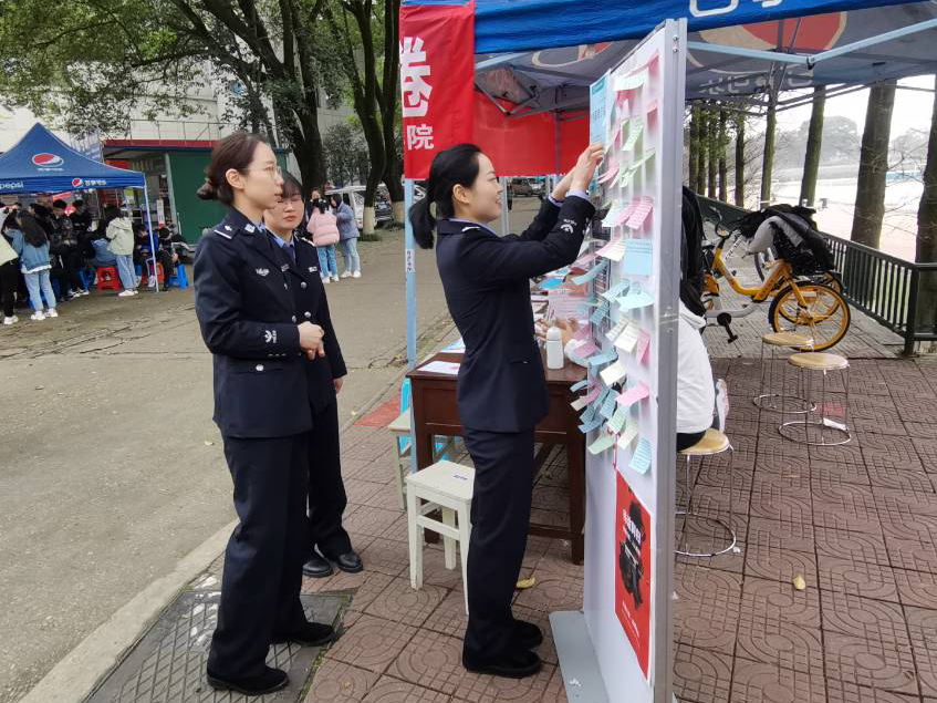 活动主要分为游戏和采访两个部分。游戏环节中,参与者通过“一分钟抄写”,将抽签条上的法律法规、相关案例正确抄写且达40字,即可将便签贴在宣传板上合影留念并获得参与奖品一份。活动使参与者在体验游戏乐趣的同时收获相关知识,倍受广大师生好评,不少受访者纷纷表示收获颇多,希望能为校园平安建设添砖加瓦。期间,省委省政府戒毒中心的公安人员也打卡参与“一分钟抄写”,并对色情网站