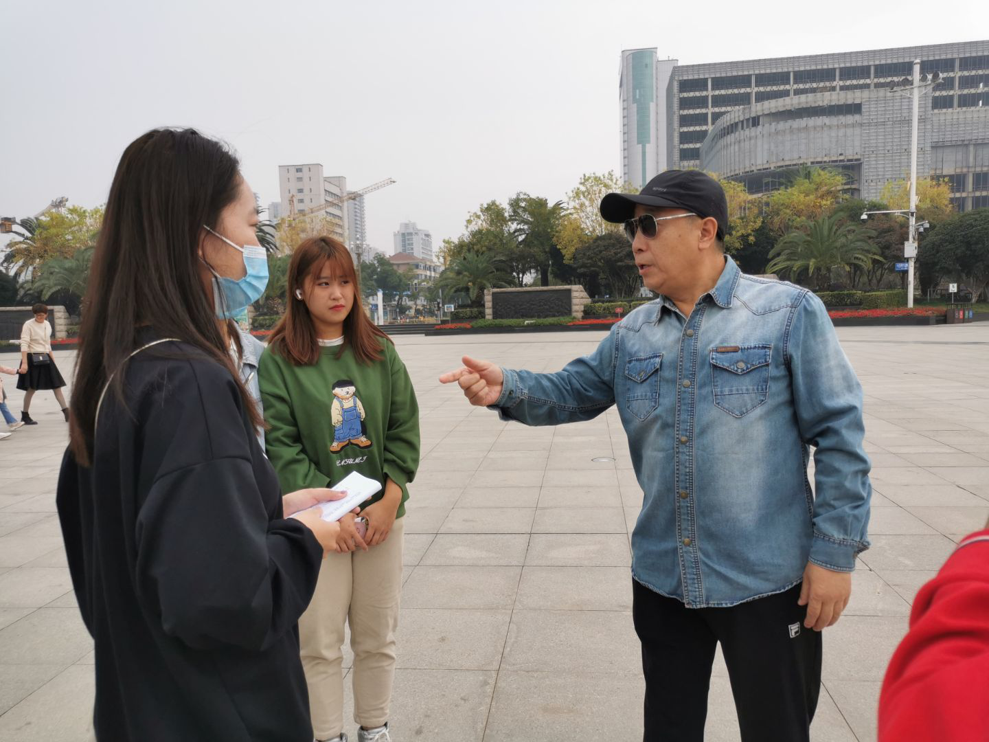信息工程学院2019级通信工程1班于八一广场开展垃圾分类普及情况调查社会实践活动。