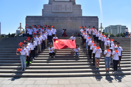 八一公园的任务结束后,各组参赛人员前往八一广场,在八一起义纪念碑前,参赛人员们手握五星红旗,脸上贴着小国旗,队形成“70”的字样合影留念,在“70”之中,一面大国旗赫然其中,学生们用鲜艳的五星红旗寄托对祖国的礼赞与祝福。