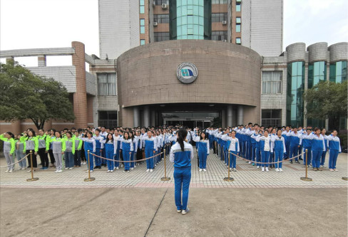讲话最后,全体学生在黄小荷的带领之下宣誓:要站就站排头;要争就争一流;要学就学优秀!
