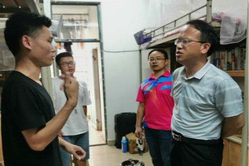 全体老师前往学生宿舍查寝,消除消防安全隐患。“这个电热水壶是多少瓦?”“桌面保持整洁,充电线不能太乱。”“你们寝室共有几个人留校?打算什么时候回家?”……老师们事无巨细地嘱咐同学们一定要注意寝室消防安全和暑假留校安全。