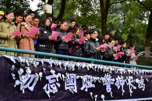同学们纷纷驻足,留言献花,表达哀思