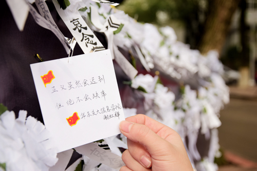 信息学子用白花簇拥正义 悼念南京大屠杀罹难者