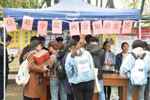 为了提高同学们对两会的认识,普及两会的相关知识重点,3月16日,信息学院于南区一食堂门口举办了“深‘读’两会”竞答两会“知识点”活动。