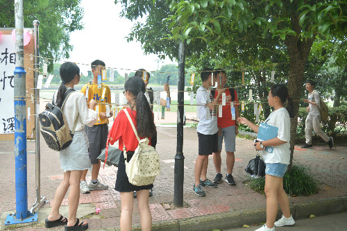 “一起生活了四年,希望我们都有一个很好的未来”“风轻云淡,愿你们永远咧着嘴角,挂着笑颜”“相遇即是缘分,遇到你们很幸运”......大家把想对室友说的话写在书签上,然后亲手绑在长绳上,书签带着大家对室友的祝福,随微风摆动。一句句真情流露,展示了诚挚的室友情谊,一张张缤纷书签,寄托了不舍的美好回忆。
