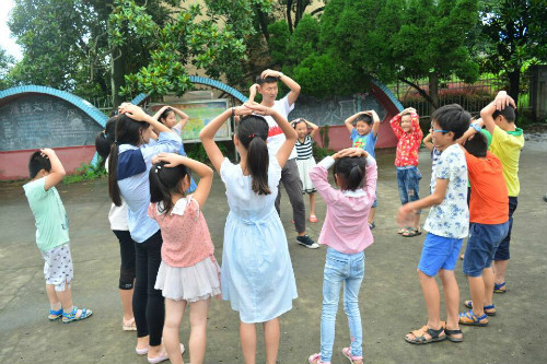 “刮大风,不怕;下大雨,不怕;下冰雹,抱头右转……”志愿者李宏福在教小朋友们玩素拓游戏,小朋友们一开始害怕生人,比较拘束不敢和志愿者说话,在玩游戏的过程中,大家互相磨合,小朋友们也敞开胸怀接受了这些“大哥哥和大姐姐”。游戏结束后,志愿者们还给每个小朋友们准备了精美的小礼物。