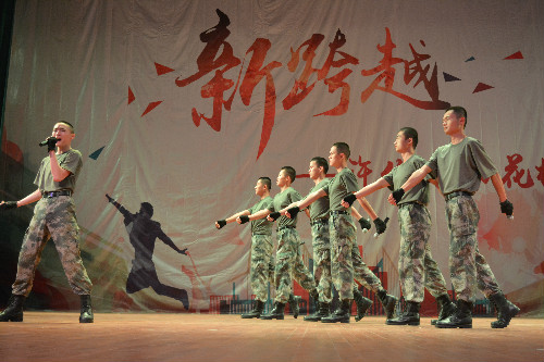 一场魅力四射的开场舞《shake it》拉开了晚会的帷幕,充满青春活力的舞姿瞬间将晚会的气氛点燃起来,引得台下新生们阵阵喝彩。“我出生在这个衣食无忧的年代……”信息学院国防健儿们高昂嘹亮的歌声和英姿飒爽的军步尽显军人们的热血丹心,让人不禁沉浸其中,追忆以往峥嵘岁月,珍惜如今韶华时光。