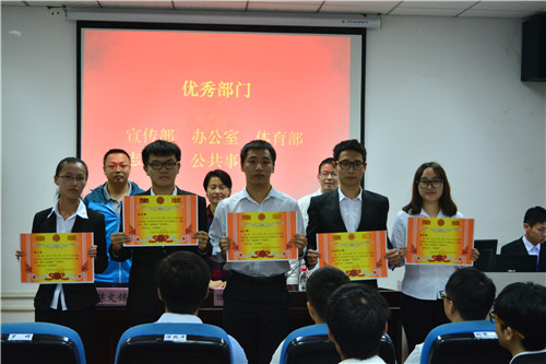 黄清华宣读了《信息工程学院第十五届学生会及团学组织“优秀部门”、“优秀干部”、“优秀干事”名单》并颁发证书。陈文锦宣读《第十六届学生会及团学组织任命干部名单》,与会领导为第十五届学生会及团学组织主席团和部长团颁发聘书。