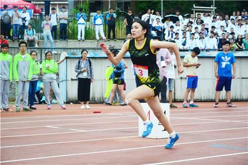 比赛还未开始,赛场上已经飘起了淅淅沥沥的雨滴,但这没有丝毫削弱运动员为了学院争光的决心。女子组比赛中,舒文璐在起跑处热身后,以蹲踞式待命,在枪响的那一刻迅速冲出,率先取得领先位置,爆发出惊人的力量,最终力夺决赛名额。