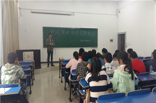 10月27日,信息学院通信(卓越)2015-1在教14栋103室召开党风廉政建设主题班会。辅导员黄清华主持召开本次会议,通信(卓越)2015-1班全体学生与会。