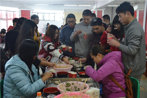 为增进同学们之间的友谊和凝聚力,在临近期末之际为大家放松心情,缓解压力,12月29日,2014级通信一二班全体同学齐聚南区一食堂,为迎新年举办包饺子活动。