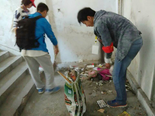 活动有三个环节,同步进行:一是现场为老年人提供志愿服务活动;二是到辖区内高龄老人家打扫卫生;三是到中山路、百花洲路和华联住宅粉刷广告垃圾、清理楼道堆积物。