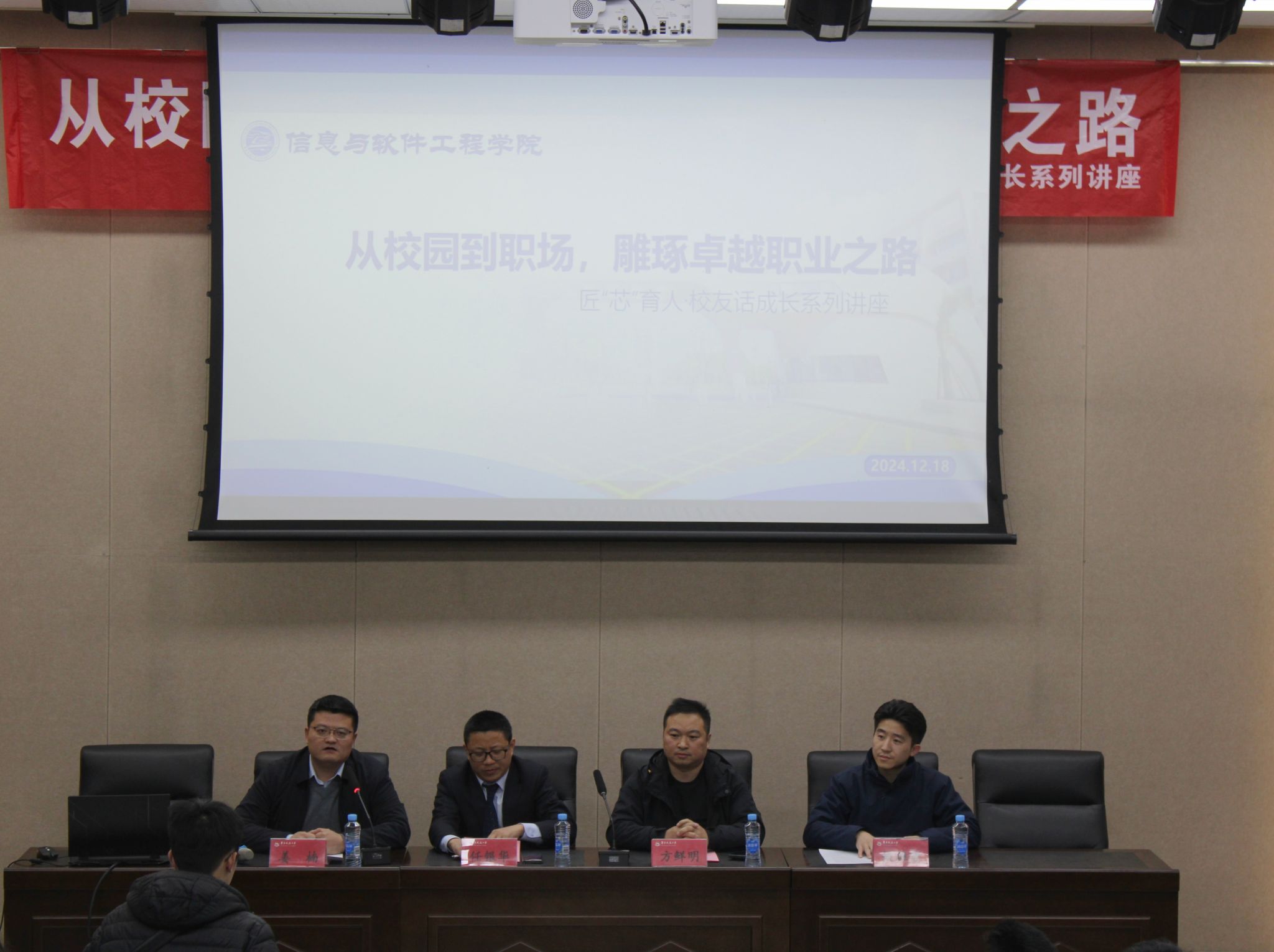 为凝聚校友力量,搭建校友与母校之间的沟通桥梁,拓宽育人途径,2024年12月18日,学院邀请优秀校友任银华、方鲜明在教4栋108校友报告厅开展“从校园到职场,雕琢卓越职业之路”主题讲座。学院党委委员、院长姜楠出席并致辞,学院辅导员兼就业干事姚雄俊主持,学院学生代表共计一百余人参加。