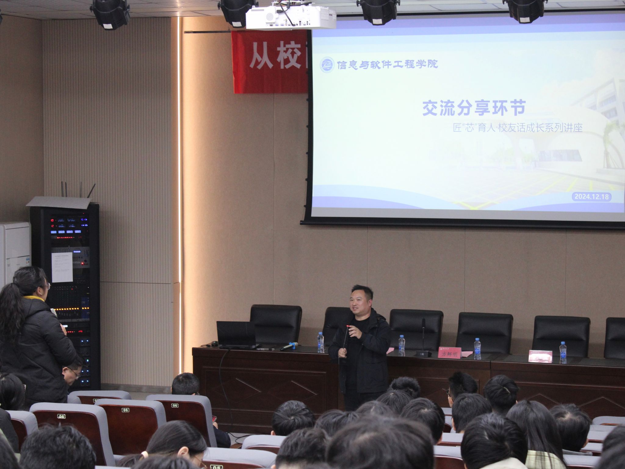姜楠对两位校友的到来表示热烈欢迎和诚挚感谢,他指出,学院始终以培养优秀人才为己任,校友们的成功是学院教育成果的有力见证。学院将以匠“芯”育人·校友话成长系列讲座为契机,进一步加强校友与学院的联系与合作,聚焦学生成长需求,充分发挥校友资源的育人作用,为同学们的成长成才搭建更广阔的平台。