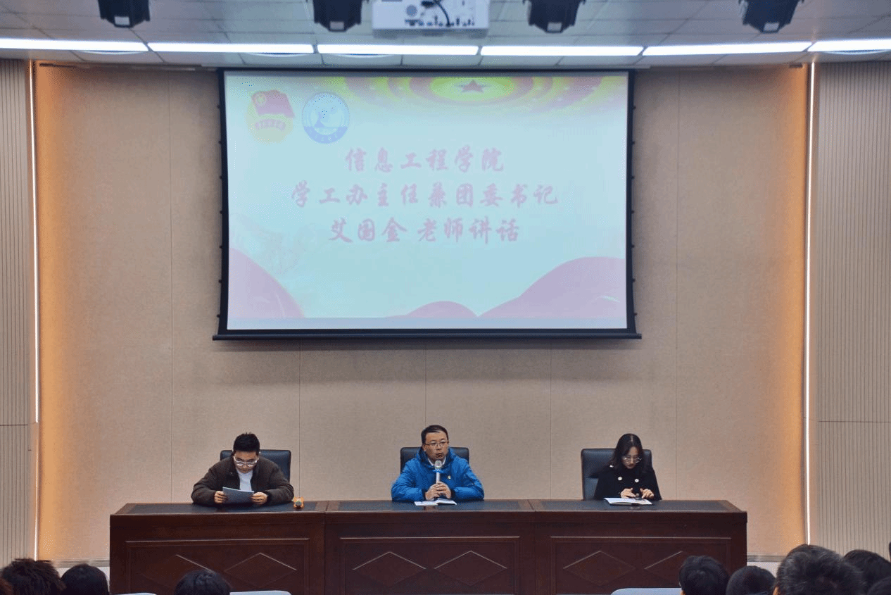 为了更好地开展学院团支部工作,提高学生团干部的工作能力,熟悉工作要求。11月15日,信息学院于教5栋108室开展学生团干部培训会开班仪式,院学工办主任兼团委书记艾国金、学工办副主任兼团委副书记李萌萌出席培训会开班仪式。