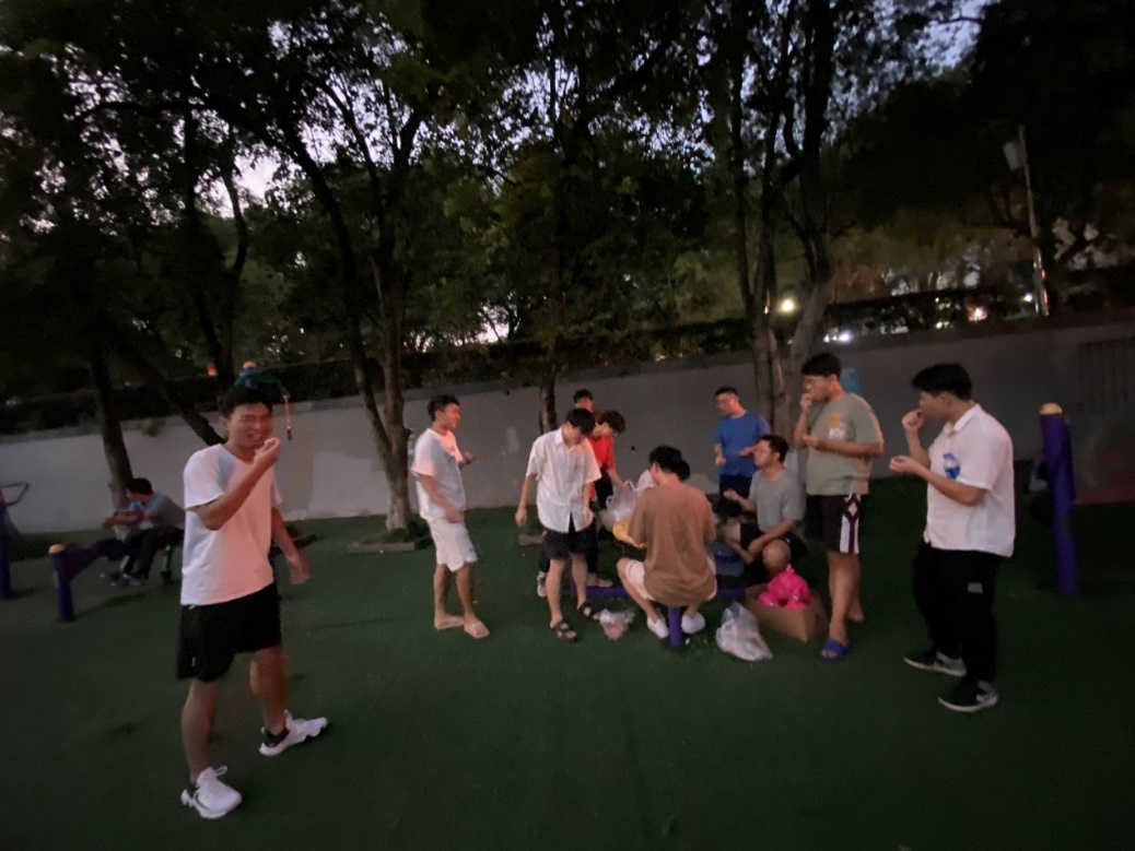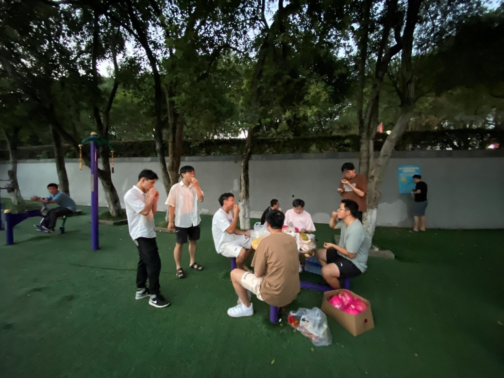 在南区田径场,同学们与辅导员一起分享美食、互动游戏,一同感受中秋节庆的浓厚氛围。