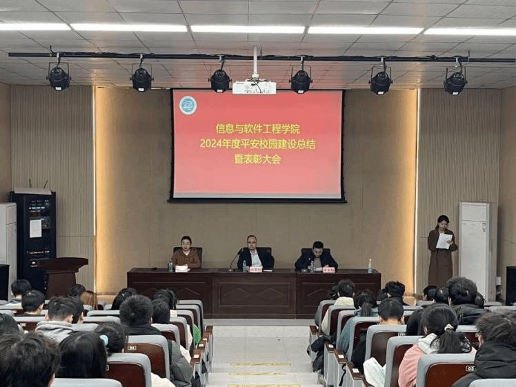 于教5栋108室举行2024年度平安校园建设总结暨表彰大会。院党委副书记冯荣刚、院学工办主任钟俊、团委副书记洪亚聪、学生会权益部全体成员,2023、2024级副班长及寝室长代表参加会议。
