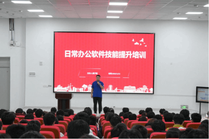 会上,软件工程(道铁工程)2025-2班班长聂子超开展办公软件技能培训,从日常办公软件各项基础操作到“AI+”服务日常学习生活,提升参训同学对办公软件的应用能力。