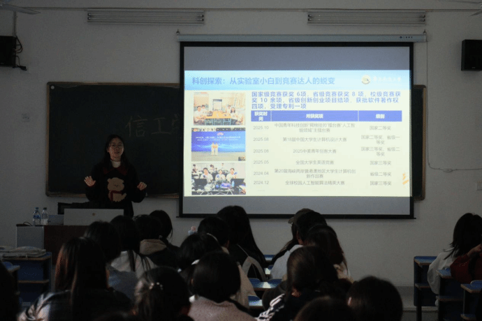 王帆则将焦点聚焦于“创新与实践”。拥有四项授权发明专利的他,用生动的项目案例向大家展示了如何将课堂知识转化为解决实际问题的创新成果。“专利和论文并非遥不可及,”他鼓励大家,“关键在于保持好奇,勇于动手,将每一个灵感付诸实践。”